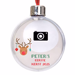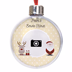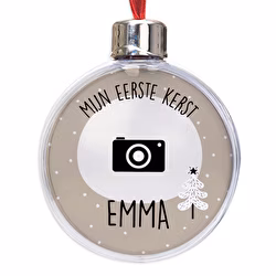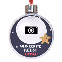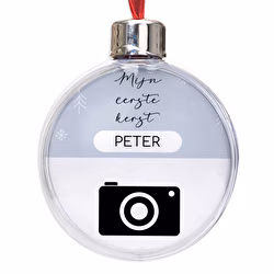 Om dat moment een speciale plaats te geven in uw kerstversiering, stellen wij de "My first Christmas" boombol voor. Kies een foto, een tekst, een naam, een zin, een tekening en/of een ontwerp waar je van houdt, en laat je verrassen door het resultaat.